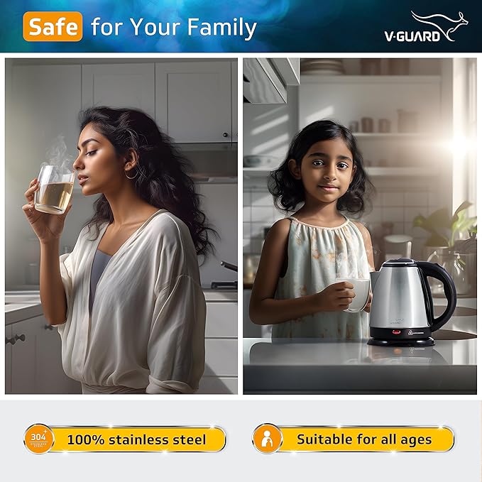 SAFE TO USE: scarlett kettle has automatic shut-off and BOIL-DRY protection to keep you safe. This means it turns off when there's NO WATER inside to boil, so no worries about accidents